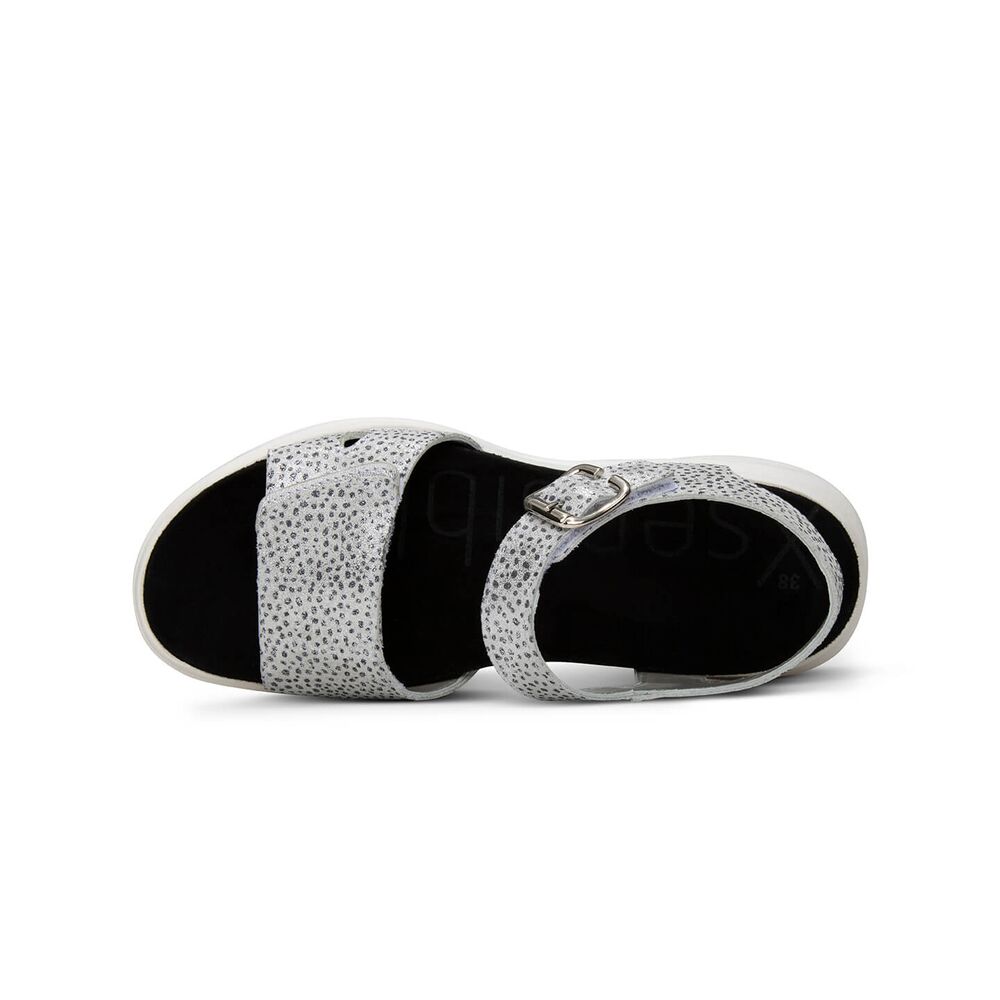 De Xsensible Sandaal Skala 30312.5.117 H White Fantasy is een zeer comfortabele sandaal met een uitstekende pasvorm. Het buitenwerk is van leer, afgewerkt met een mooie print in een witte kleur. Verder is de binnenkant geheel leer gevoerd, evenals het voetbed. De sandaal heeft een zeer goed en comfortabel voetbed dat ook uitneembaar is, zodat er eventueel eigen zolen in kunnen worden gedragen. De 2 banden over de wreef zijn te verstellen met klittenband. De sandaal is gemaakt op wijdte H, waardoor hij geschikt is voor een normale tot bredere voet. De zool is zeer stabiel en slijtvast en draagt bij aan een geweldig loopcomfort. Loopcomfort gegarandeerd!