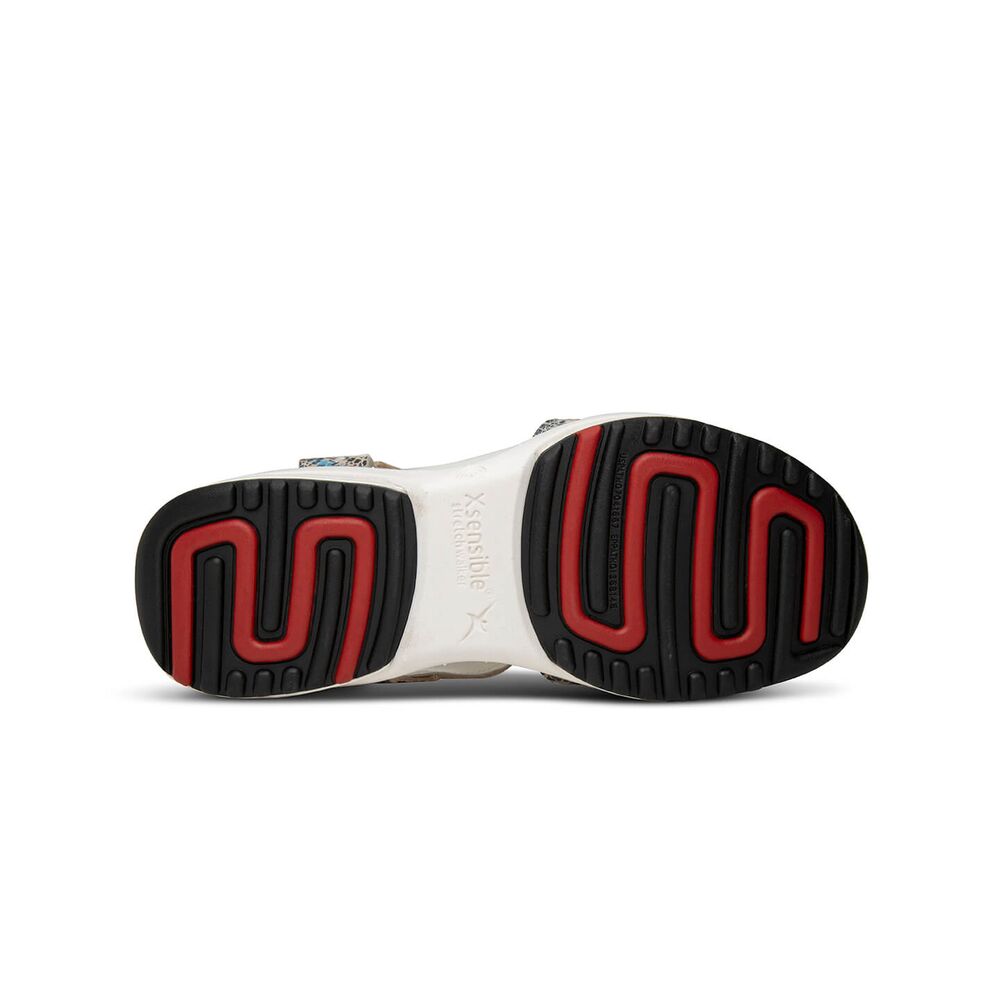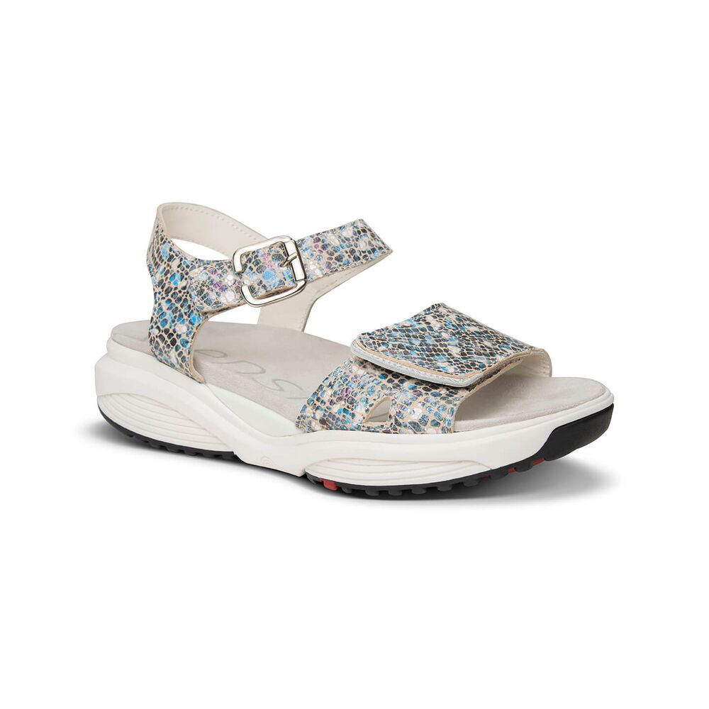 De Xsensible Sandaal Skala 30312.5.255 H Jeans Combi is een zeer comfortabele sandaal met een uitstekende pasvorm. Het buitenwerk is van leer, afgewerkt met een mooie print in een jeansblauwe kleur. Verder is de binnenkant geheel leer gevoerd, evenals het voetbed. De sandaal heeft een zeer goed en comfortabel voetbed dat ook uitneembaar is, zodat er eventueel eigen zolen in kunnen worden gedragen. De 2 banden over de wreef zijn te verstellen met klittenband. De sandaal is gemaakt op wijdte H, waardoor hij geschikt is voor een normale tot bredere voet. De zool is zeer stabiel en slijtvast en draagt bij aan een geweldig loopcomfort. Loopcomfort gegarandeerd!