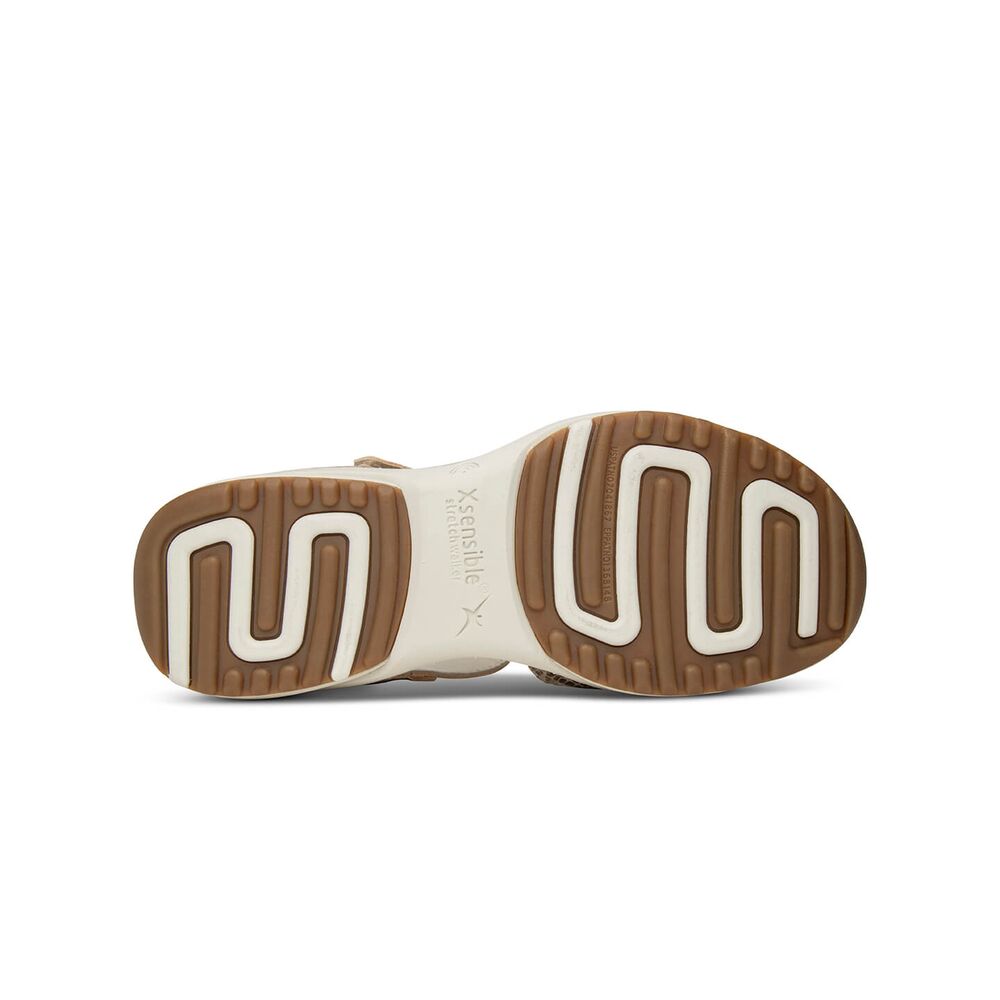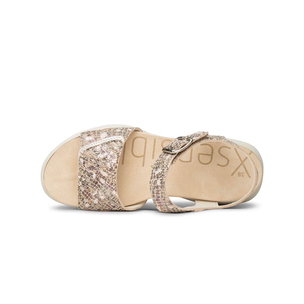 De Xsensible Sandaal Skala 30312.5.428 H Sand Combi is een zeer comfortabele sandaal met een uitstekende pasvorm. Het buitenwerk is van leer, afgewerkt met een mooie print in brons kleur. Verder is de binnenkant geheel leer gevoerd, evenals het voetbed. De sandaal heeft een zeer goed en comfortabel voetbed dat ook uitneembaar is, zodat er eventueel eigen zolen in kunnen worden gedragen. De 2 banden over de wreef zijn te verstellen met klittenband. De sandaal is gemaakt op wijdte H, waardoor hij geschikt is voor een normale tot bredere voet. De zool is zeer stabiel en slijtvast en draagt bij aan een geweldig loopcomfort. Loopcomfort gegarandeerd!