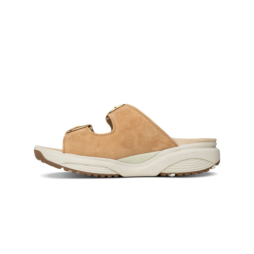 De Xsensible Slipper Mykonos 30322.5.311 H Camel is een zeer comfortabele slipper met een uitstekende pasvorm. Het buitenwerk is van bruin suèdeleer. Verder is de binnenkant geheel leer gevoerd, evenals het voetbed. De sandaal heeft een zeer goed en comfortabel voetbed dat ook uitneembaar is, zodat er eventueel eigen zolen in kunnen worden gedragen. De 2 banden over de wreef zijn te verstellen met klittenband. De slipper is gemaakt op wijdte H, waardoor hij geschikt is voor een normale tot bredere voet. De zool is zeer stabiel en slijtvast en draagt bij aan een geweldig loopcomfort. Loopcomfort gegarandeerd!