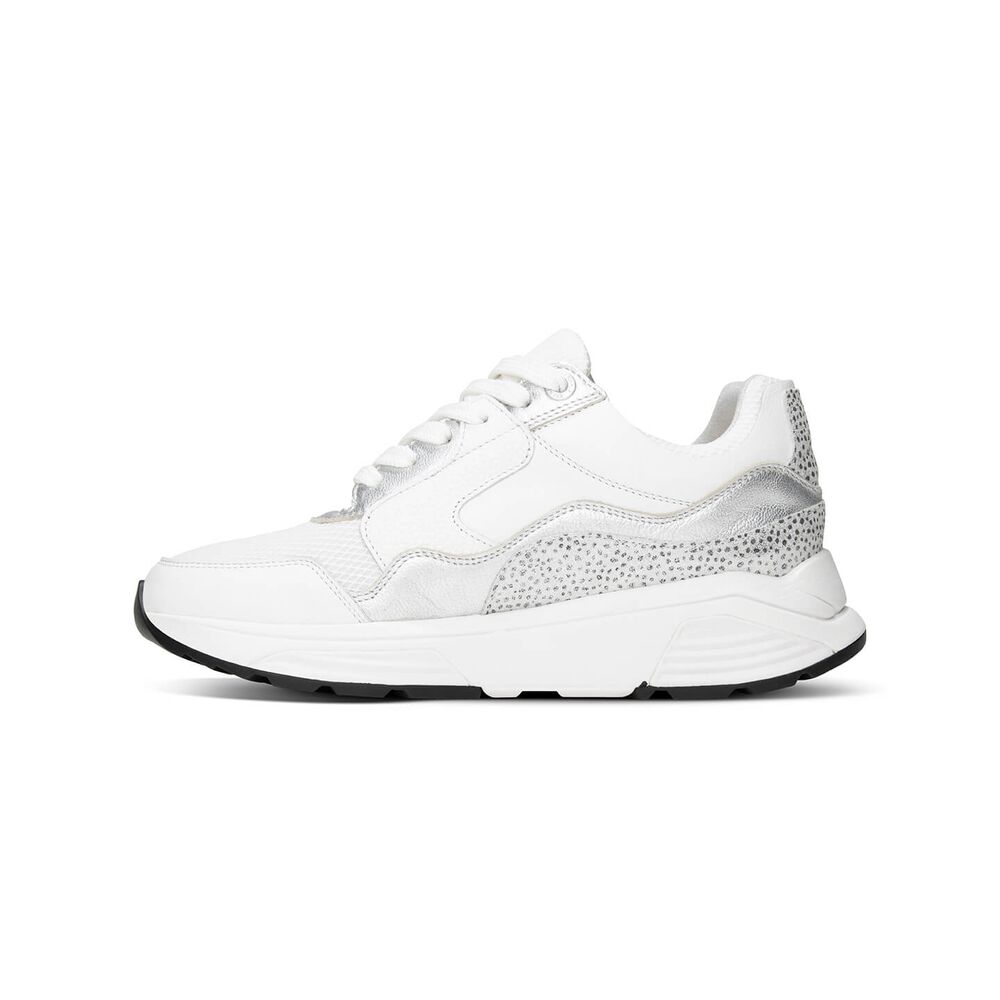 De Xsensible Stretchwalker Sneaker Golden Gate Lady 33000.1.190 GX Wit Combi Zilver is een zeer comfortabele sneaker met een uitstekende pasvorm. Het buitenwerk is gemaakt van wit en zilver gladleer, gecombineerd met textiel. Verder is de binnenkant gemaakt van een combinatie van leer en textiel. De sneaker heeft een zeer goed en comfortabel voetbed dat ook uitneembaar is, zodat er eventueel eigen steunzolen in kunnen worden gedragen. De zool is zeer stabiel en slijtvast en draagt bij aan een geweldig loopcomfort. Loopcomfort gegarandeerd!