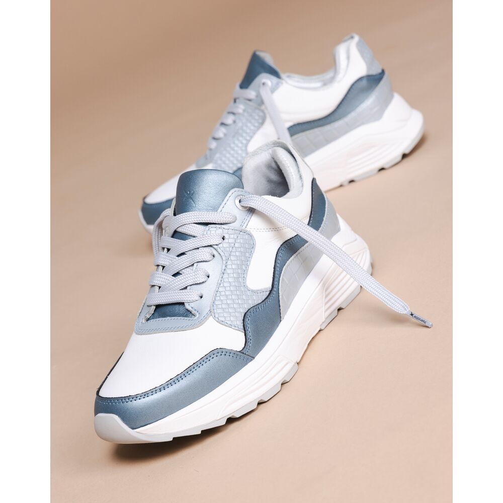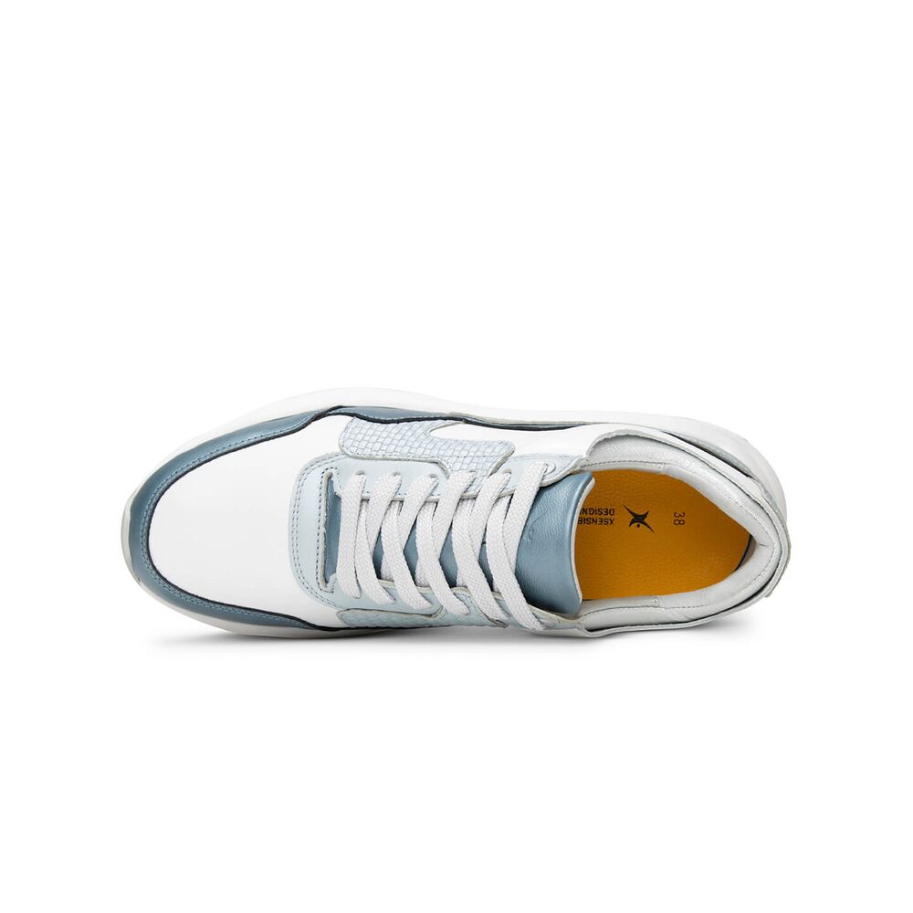 De Xsensible Stretchwalker Sneaker Golden Gate Lady 33000.3.216 GX Jeans Combi Wit is een zeer comfortabele sneaker met een uitstekende pasvorm. Het buitenwerk is gemaakt van blauw en wit leer, gecombineerd met stretchmateriaal. Verder is de binnenkant gemaakt van een combinatie van leer en textiel. De sneaker heeft een zeer goed en comfortabel voetbed dat ook uitneembaar is, zodat er eventueel eigen steunzolen in kunnen worden gedragen. De zool is zeer stabiel en slijtvast en draagt bij aan een geweldig loopcomfort. Loopcomfort gegarandeerd!
