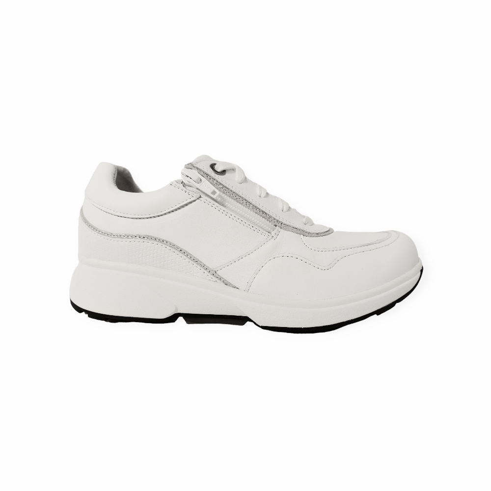 De Xsensible Stretchwalker Sneaker Lima 30204.3.101 HX Wit, is een zeer comfortabele sneaker met een uitstekende pasvorm. Het buitenwerk is gemaakt van gladleer in de kleur wit met een klein zilver detail. Verder is de binnenkant gemaakt van leer. De sneaker heeft een zeer goed en comfortabel voetbed die ook uitneembaar is, zodat er eventueel eigen steunzolen in kunnen worden gedragen. De schoen heeft een breedte maat H, voor de iets bredere voet. De zool is zeer stabiel en slijtvast en draagt bij aan een geweldig loopcomfort. Loopcomfort gegarandeerd! Hieronder nog wat extra informatie over Xsensible.