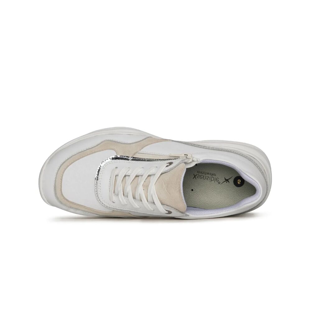 De Xsensible Stretchwalker Sneaker SWX11 30085.3.131 HX Wit Zilver is een zeer comfortabele sneaker met een uitstekende pasvorm. Het buitenwerk is gemaakt van leer in een prachtige combinatie van kleuren. Verder is de binnenkant gemaakt van een combinatie van leer en textiel. De sneaker heeft een zeer goed en comfortabel voetbed die ook uitneembaar is, zodat er eventueel eigen steunzolen in kunnen worden gedragen. De zool is zeer stabiel en slijtvast en draagt bij aan een geweldig loopcomfort. Loopcomfort gegarandeerd! Hieronder nog wat extra informatie over Xsensible.